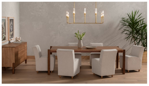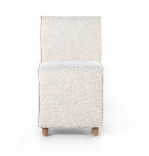 BDC LivingBS$726.00Product Description: Bring some texture into play. Armless dining seating upholstered in a chunky, cream-colored boucle, striking a sculptural silh...