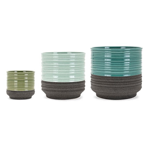 BDC Livingfrom BS$26.00Product Description: Ceramic flower pots in three glaze color finishes contrasted by black matte bases. Features dimensional banded surface texture...