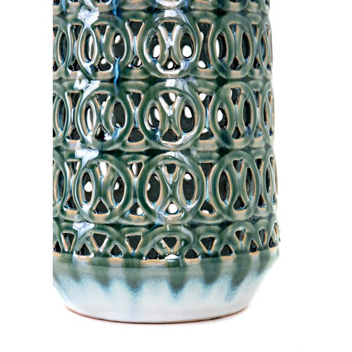 BDC Livingfrom BS$69.00Product Description: Transitional style 100% ceramic. Gentle sage green reactive glaze over ivory base color. Intricate handcut linked circle desig...