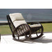 Product Description: Another new and modern interpretation of a true classic, Skyline Design brings forth the outdoor Dynasty Rocking Chair with Cushions. The high quality of the wickers ensures high tensile strength allowing for years of rocking and relaxing in this chair.