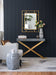 Gray Faux Leather and Gold Steel Crossed-Leg Console Table